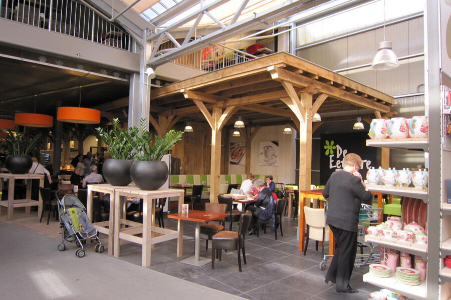 After the cold greenhouse is the Intratuincafé and a spacious logistics hub, with wide stairs and an elevator to the floor. With an area of ​​about 1,500 m², it offers plenty of space for garden furniture.